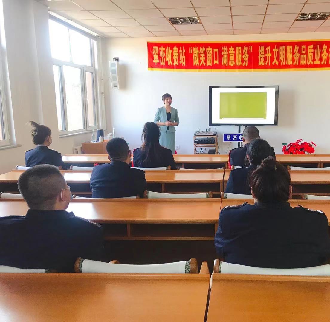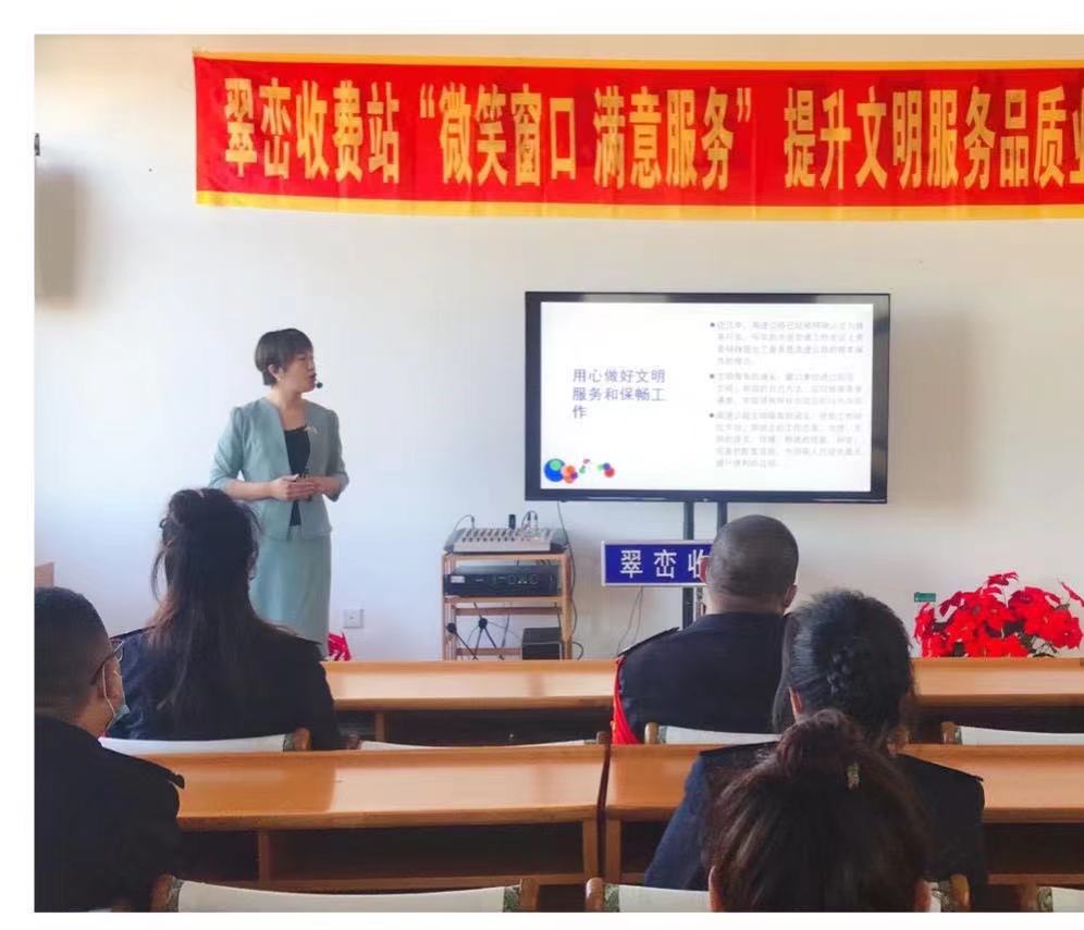 此次培訓翠巒收費站領導高度重視,認真組織收費站干部職工和窗口服務人員,共計30余人參加此次培訓。此次培訓是以“辦事提速、服務提質、制度提效、形象提升”為目標,結合窗口工作實際,以“干什么、練什么、缺什么、補什么”為原則,開展崗位大練兵,助力提高翠巒收費站窗口服務質量。通過對窗口服務人員手勢禮儀、微笑禮儀的講授和實訓,收費站干部職工及進駐窗口工作人員對服務禮儀有了更新、更全面的了解。