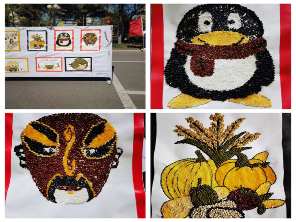 5月17日,旅游商務學院現(xiàn)代農(nóng)業(yè)經(jīng)濟管理專業(yè)的2022級學生以普通小麥、玉米、大米、黑米、糜子、谷子、大豆、高粱、綠豆、紅豆、黑豆等多種作物為“畫筆”,結(jié)合時代背景和專業(yè)特色,在硬紙板上繪出了“節(jié)約糧食”“國粹臉譜”“大豐收”等不同主題的五谷糧食畫作品,在伊春職業(yè)學院職業(yè)教育周專業(yè)技能展示中獻禮。