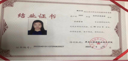 為響應(yīng)習(xí)近平總書記提出的“冰天雪地也是金山銀山”的號召,推動(dòng)我校冰雪項(xiàng)目建設(shè)工作高站位、高品質(zhì)、高水平發(fā)展。旅游商務(wù)學(xué)院重視教師素質(zhì)提高,5月8日-19日,組織旅游專業(yè)姚方杰、劉婷兩位教師參加“黑龍江高職冰雪旅游項(xiàng)目”培訓(xùn)學(xué)習(xí)。兩位教師順利完成并通過了培訓(xùn)學(xué)習(xí),姚方杰老師被評為優(yōu)秀學(xué)員。