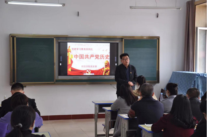 按照學(xué)院黨史學(xué)習(xí)教育工作部署,4月2日下午,師范學(xué)院黨支部負(fù)責(zé)人王海峰同志以《中國共產(chǎn)黨歷史》為題,為支部全體黨員和入黨積極分子作了一堂生動精彩的黨史知識輔導(dǎo)。
