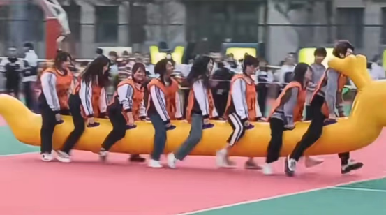 參賽隊員們騎在充氣龍舟上,通過協(xié)調(diào)一致的節(jié)奏和力量,模擬水上龍舟的劃槳動作,向著終點沖刺。這項運動看似簡單,實則考驗了團(tuán)隊成員之間的默契與協(xié)作,每一次的配合都需要同舟共濟(jì)的團(tuán)結(jié)精神。
