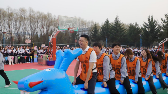 活動開始后,伴隨著歡快的鼓點和熱烈的氣氛,師范學(xué)院黨支部書記金鈴玲、校團(tuán)委書記楊志剛分別帶領(lǐng)輔導(dǎo)員參賽,為旱地龍舟運動賽拉開了序幕。隨著教師組別的精彩亮相,學(xué)生們以班級為單位,身著色彩鮮明的隊服,紛紛加入到這場充滿活力與競技精神的運動賽中。各班級隊伍在起跑線上整裝待發(fā),他們的臉上洋溢著青春的笑容和對勝利的渴望。