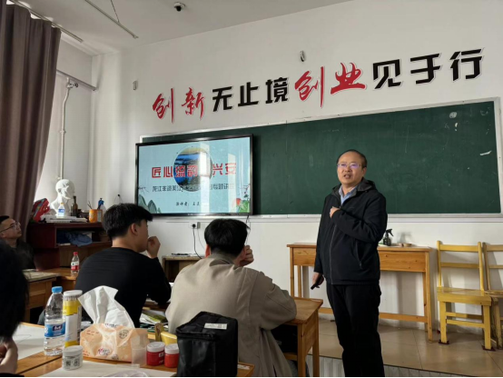 王美江是黑龍江省非物質文化遺產木拼畫制作技藝代表性傳承人、“中國工藝美術行業(yè)優(yōu)秀技藝人才”“黑龍江省勞動模范”“龍江技術能手”“林都木藝大師”“林都精英”“伊春市優(yōu)秀專門人才”,他的作品曾榮獲國內外博覽會和創(chuàng)新設計大賽金獎32項,自主研發(fā)的6項產品和技術獲國家專利。講座中,王美江以“匠心流韻繪興安”為題,結合自身多年從事木制工藝研發(fā)創(chuàng)作經(jīng)歷,從木拼畫、北沉香、山核桃的發(fā)展歷史、制作工藝流程及相關制品展示等三個方面講解龍江木藝非遺文化歷史,傳授非遺制作技藝。他勉勵同學們要潛心學習,循序漸進,發(fā)揚滴水石穿、精益求精的匠人精神。在互動環(huán)節(jié),他圍繞木藝行業(yè)的就業(yè)前景與發(fā)展方向,就同學們的提問做出了詳細的回答和建議。
