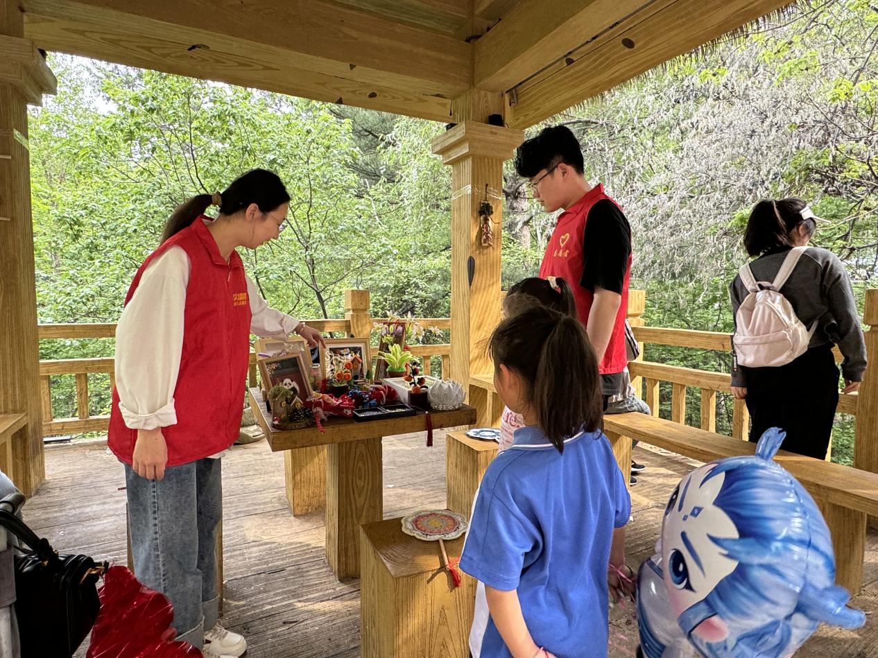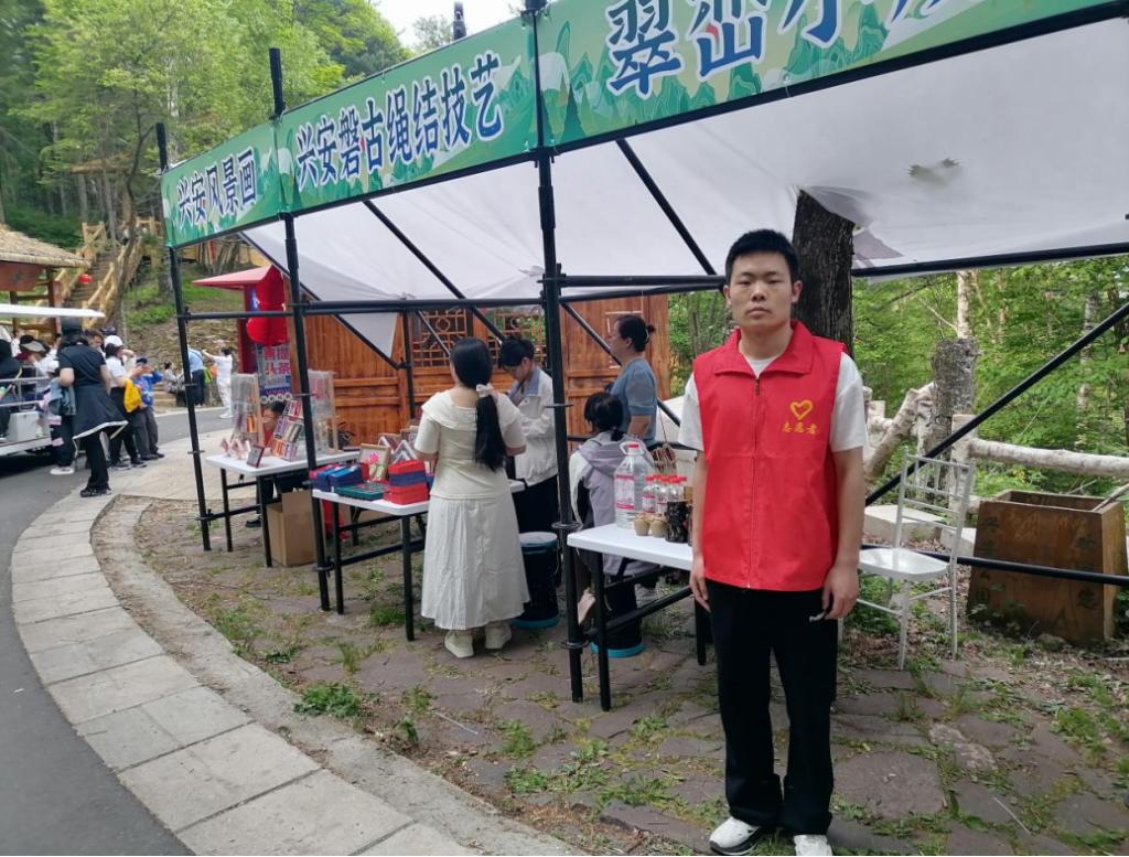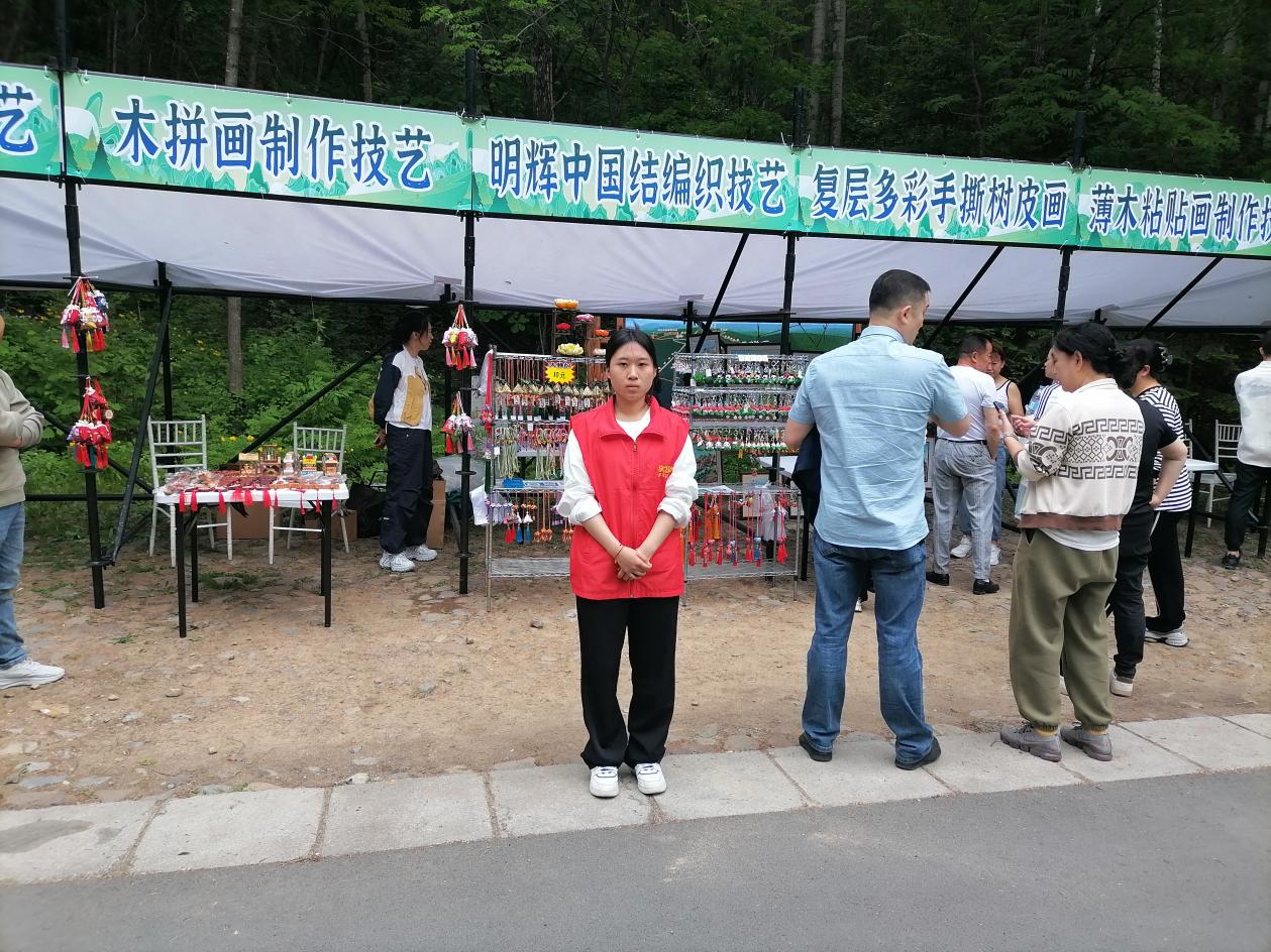 活動現(xiàn)場,樺樹皮制作、木雕、魚皮畫等極具地域特色的非遺項目驚艷亮相,琳瑯滿目的非遺工藝品吸引了眾多市民駐足欣賞?;顒忧捌?,學(xué)生志愿者們齊心協(xié)力完成了現(xiàn)場場景物品的布置與擺放工作,從桌椅的整齊排列,到非遺作品的精美陳列?;顒悠陂g,志愿者們穿梭在人群中,耐心維護(hù)現(xiàn)場秩序,引導(dǎo)市民有序參觀體驗,保障活動有條不紊地進(jìn)行。面對好奇的市民,他們化身“文化使者”,詳細(xì)介紹非遺產(chǎn)品的歷史淵源、制作工藝和文化內(nèi)涵,讓更多人了解伊春豐富的非遺文化資源。