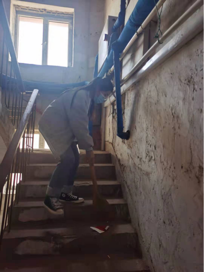 2021年4月19日,師范學(xué)院全體學(xué)生會(huì)干部利用課余時(shí)間,到伊美區(qū)新園小區(qū)開展志愿服務(wù),清理老舊小區(qū)環(huán)境衛(wèi)生,清除樓道小廣告,清掃樓道垃圾,對(duì)衛(wèi)生死角進(jìn)行全方位清理。