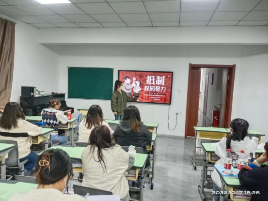 為增強(qiáng)學(xué)生對校園暴力的防范意識,減輕學(xué)校管理的負(fù)擔(dān),增強(qiáng)學(xué)生相關(guān)法律法規(guī)的責(zé)任意識,做到知法懂法不犯法。2022年11月15日,師范學(xué)院在19號教學(xué)樓組織開展“拒絕校園欺凌,構(gòu)建和諧校園”主題團(tuán)日活動(dòng),學(xué)習(xí)如何預(yù)防校園欺凌。2021級、2022級全體學(xué)生參加此次活動(dòng)。