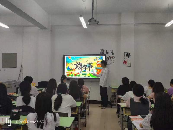 會上,團支書通過圖文并茂的方式,追溯了端午節(jié)的由來,講述了屈原的故事,讓同學們明白端午節(jié)不只是粽子節(jié)、龍舟節(jié),更是民族節(jié)、愛國節(jié)。為進一步發(fā)揮端午節(jié)的思想熏陶和文化教育功能,各班在班會上同步開展了以“端午·家國情懷”為主題的知識競賽。同學們積極參與、認真作答,在競賽中體悟端午節(jié)文化的深厚內(nèi)涵,汲取向上的精神力量。
