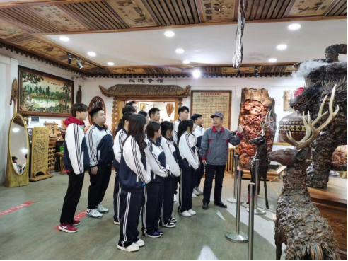 2024年3月31日上午,師范學院黨支部書記金鈴玲、院長王海峰、藝術設計教研室主任曲偉、工藝美術品設計專業(yè)的師生們一同前往伊春市美江木業(yè)有限公司調研走訪。企業(yè)負責人丁利娟熱情接待了我院師生,并帶領大家參觀了美江木藝展覽館、非物質文化遺產展示廳、工藝品雕刻車間等。