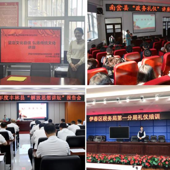 教研室教師應(yīng)邀在市直機(jī)關(guān)大講堂首講伊春精神和伊春林區(qū)地域文化,多次受邀在伊春電視臺、《伊春日報》等媒體宣講伊春精神、中華優(yōu)秀傳統(tǒng)文化。教研室教師還多次深入政府、企事業(yè)單位進(jìn)行“政務(wù)禮儀”、“服務(wù)禮儀”的培訓(xùn),弘揚(yáng)中華優(yōu)秀傳統(tǒng)文化。