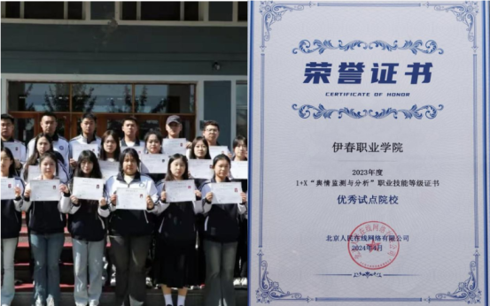 伊春職業(yè)學(xué)院公共教學(xué)部“1+X”輿情監(jiān)測與分析職業(yè)技能等級考試站點(diǎn)于2022年10月獲批,2023年7月開始進(jìn)行師資培訓(xùn),截止目前已完成兩次考試,共有58名學(xué)生獲得輿情監(jiān)測與分析職業(yè)技能等級證書(中級)。2023年榮獲1+X”輿情監(jiān)測與分析“優(yōu)秀試點(diǎn)院?!睒s譽(yù)稱號。