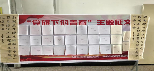 為慶祝中國共產(chǎn)黨成立一百周年,謳歌黨的輝煌歷程和豐功偉績,激勵和引領(lǐng)廣大師生大力弘揚(yáng)以愛國主義為核心的偉大民族精神,推進(jìn)全體黨員干部學(xué)好“四史”,向建黨100周年獻(xiàn)禮,公共教學(xué)部黨總支舉辦了以“知史愛黨、為國育才”和“黨旗下的青春”為主題的征文活動。征文活動于5月18日開始啟動,教師黨員及學(xué)生積極踴躍參加,共收到征文80篇,經(jīng)過篩選,共選出優(yōu)秀征文55篇,于6月9日在1號樓大廳進(jìn)行展出。
