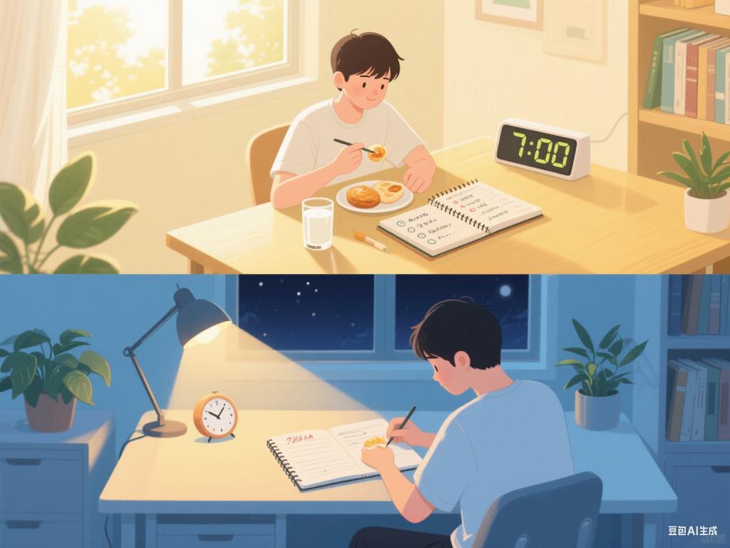 試著每天固定時間起床和入睡,避免熬夜刷手機(jī)或過度賴床。早餐時可以規(guī)劃當(dāng)天的學(xué)習(xí)任務(wù),睡前花十分鐘回顧完成情況,這種儀式感能幫身體快速適應(yīng)節(jié)奏變化。把書桌整理干凈,遠(yuǎn)離床上學(xué)習(xí),物理空間的劃分會讓專注力自然提升。