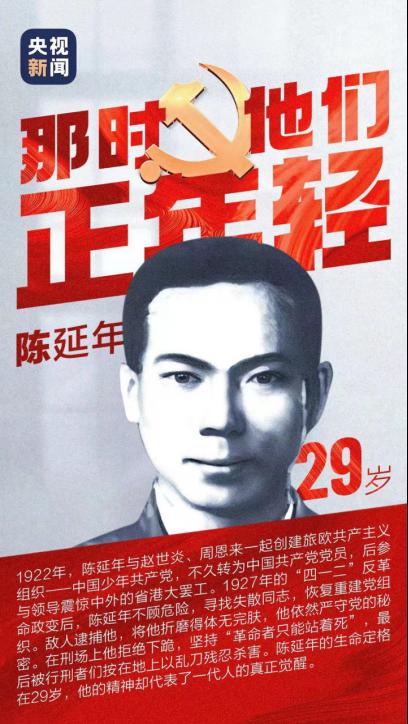 “陳延年,中國共產(chǎn)黨第五屆中央政治局候補(bǔ)委員,革命烈士。1927年在上海被捕,寧死不跪,被國民黨反動(dòng)派亂刀砍死,時(shí)年29歲。”