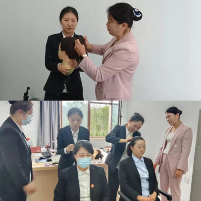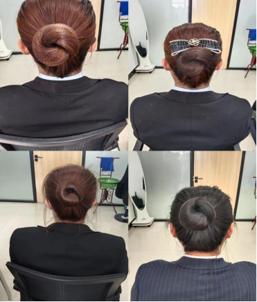 此次培訓(xùn)的主要內(nèi)容為,窗口服務(wù)人員的服務(wù)禮儀。包括儀容、儀表,尤其是要求窗口服務(wù)人員的發(fā)型統(tǒng)一、整潔,符合工作要求。汪雯雯老師在給工作人員做了示范講解后,工作人員進(jìn)行了工作盤發(fā)的實(shí)操,汪老師逐一進(jìn)行了指導(dǎo)。