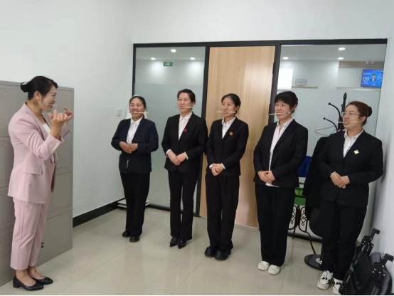 盤發(fā)實(shí)操后,汪雯雯老師就窗口服務(wù)工作中常用的手勢禮儀、行進(jìn)禮儀、引領(lǐng)禮儀等內(nèi)容進(jìn)行了培訓(xùn)。著重講解了微笑服務(wù)禮儀在窗口工作的重要性,講授了微笑的實(shí)操方法。各位工作人員都積極進(jìn)行了配合,并認(rèn)真進(jìn)行了練習(xí)。