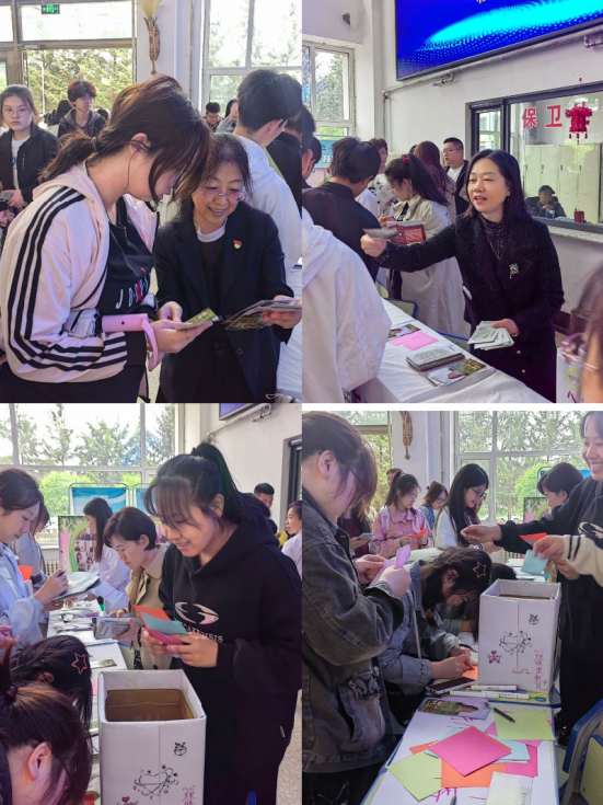 杜鵑花使者心理社團(tuán)為同學(xué)們發(fā)放了心理健康知識(shí)宣傳折頁(yè)及小禮品,積極引導(dǎo)同學(xué)們?cè)诓始埳蟽A訴了自己心里話和愿望,并將彩紙折成千紙鶴放入愿望箱。
