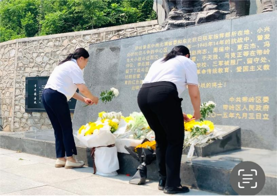 白山黑水歌名士,碧血丹心憶抗聯(lián)。思政黨支部全體黨員第一站來到了帶嶺抗日英烈紀(jì)念園并在東北抗聯(lián)紀(jì)念碑前敬獻(xiàn)鮮花、緬懷革命先烈,潔白的菊花代表了全體黨員對革命先烈的哀思與崇敬。