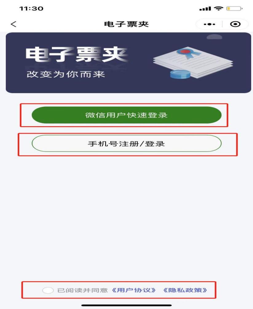 3.選擇微信用戶登錄,或者手機號注冊登錄,選擇完成后,勾選下方用戶協(xié)議。