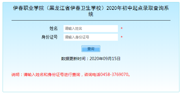 伊春職業(yè)學(xué)院(黑龍江省伊春衛(wèi)生學(xué)校)2020年初中起點(diǎn)錄取查詢系統(tǒng)
