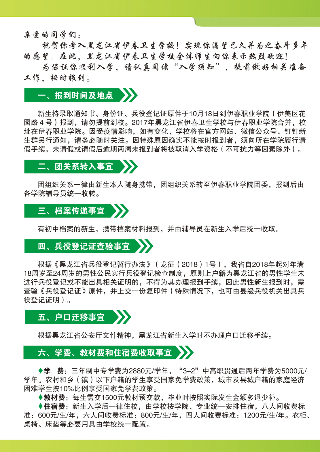黑龍江省伊春衛(wèi)生學校2020級新生入學須知