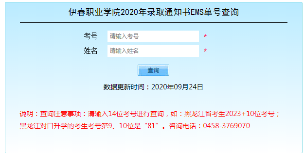 伊春職業(yè)學院2020年錄取通知書EMS單號查詢