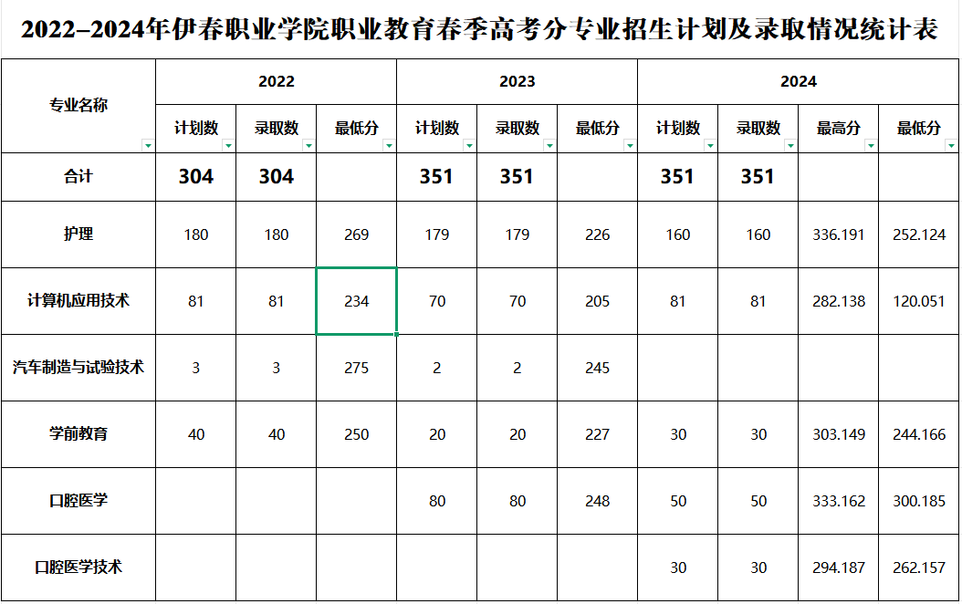 2022-2024年伊春職業(yè)學院職教高考(對口升學)考試招生計劃及錄取情況