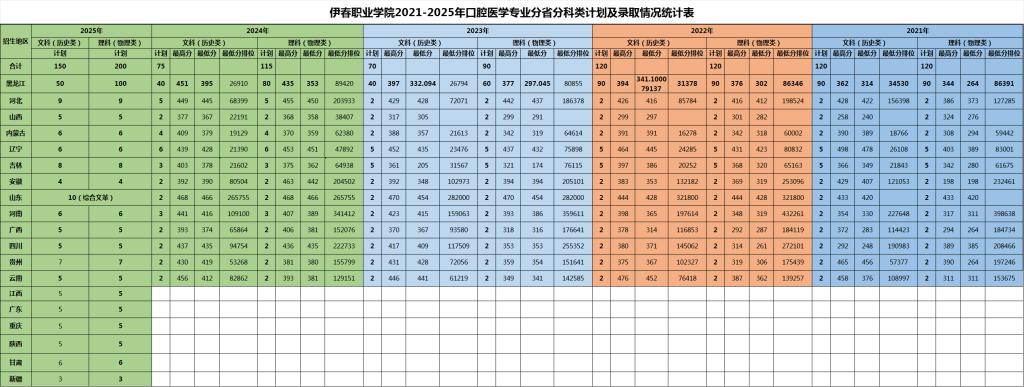 伊春職業(yè)學(xué)院2021-2024年口腔醫(yī)學(xué)專業(yè)分省分科類計(jì)劃及錄取情況