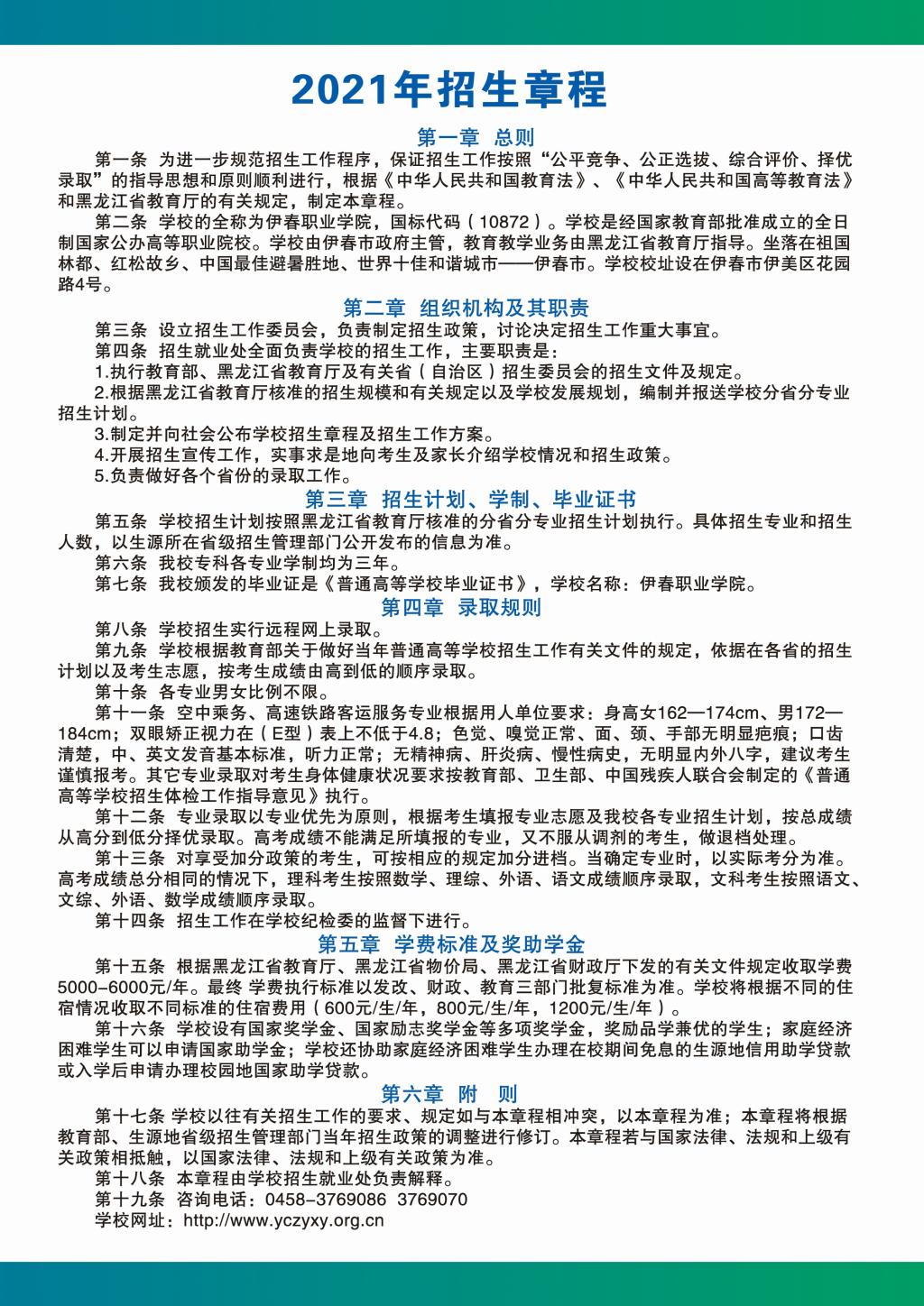 伊春職業(yè)學院2021年招生簡章