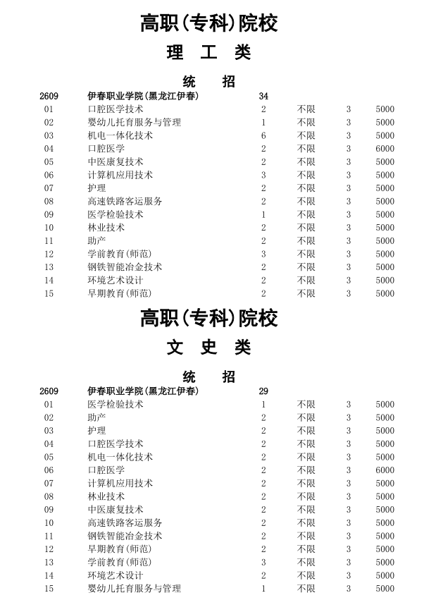 伊春職業(yè)學(xué)院2023年貴州省招生計劃