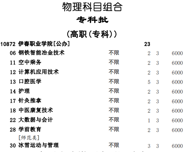 伊春職業(yè)學(xué)院2024年河北省招生計劃