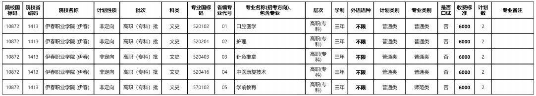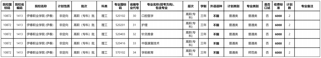 伊春職業(yè)學(xué)院2024年山西省招生計(jì)劃