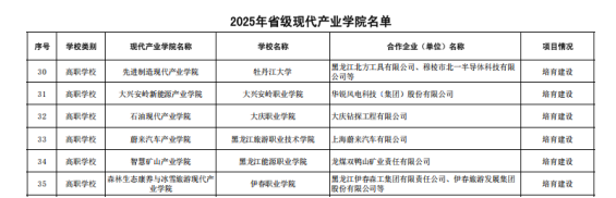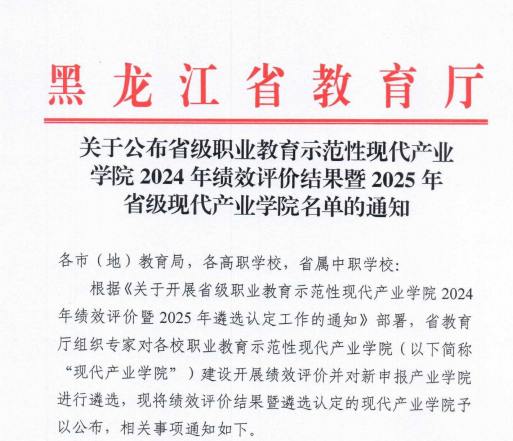 8月21日,黑龍江省教育廳公布了2025年省級職業(yè)教育示范性現(xiàn)代產(chǎn)業(yè)學(xué)院培育建設(shè)項目名單以及省級現(xiàn)代產(chǎn)業(yè)學(xué)院2024年績效評價結(jié)果。
