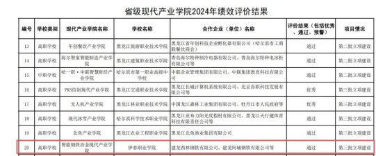 旅游商務(wù)學(xué)院聯(lián)合黑龍江伊春森工集團有限責(zé)任公司、伊春旅游發(fā)展集團股份有限公司、黑龍江九峰山養(yǎng)心谷游覽景區(qū)管理有限公司等單位共同申報的“森林生態(tài)康養(yǎng)與冰雪旅游現(xiàn)代產(chǎn)業(yè)學(xué)院”被評為2025年省級職業(yè)教育示范性現(xiàn)代產(chǎn)業(yè)學(xué)院培育建設(shè)項目。工程應(yīng)用技術(shù)學(xué)院與建龍西林鋼鐵有限公司、建龍阿城鋼鐵有限公司等單位共同申報的“智能鋼鐵冶金現(xiàn)代產(chǎn)業(yè)學(xué)院”2024年績效評價結(jié)果為通過。