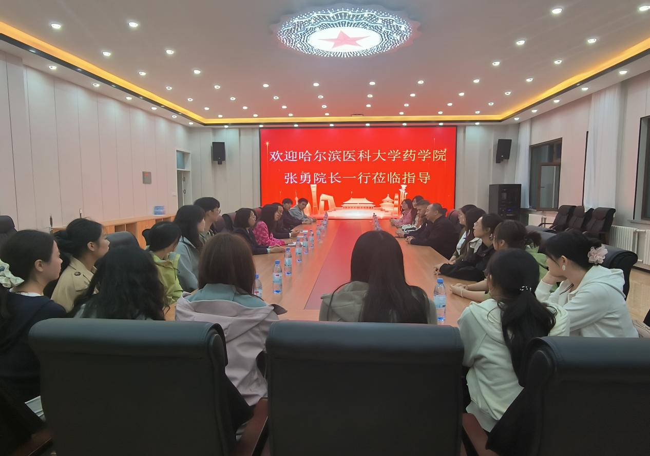 為進(jìn)一步深化校際合作,推動(dòng)藥學(xué)專業(yè)高質(zhì)量發(fā)展,10月2日,哈爾濱醫(yī)科大學(xué)藥學(xué)院院長(zhǎng)張勇教授帶領(lǐng)其研究生團(tuán)隊(duì)一行25人到我院考察交流。醫(yī)學(xué)技術(shù)學(xué)院黨支部書記孫曉會(huì)、院長(zhǎng)韓金華、醫(yī)學(xué)實(shí)訓(xùn)中心主任馬玄及藥學(xué)專業(yè)負(fù)責(zé)人王婷等參加交流活動(dòng)。