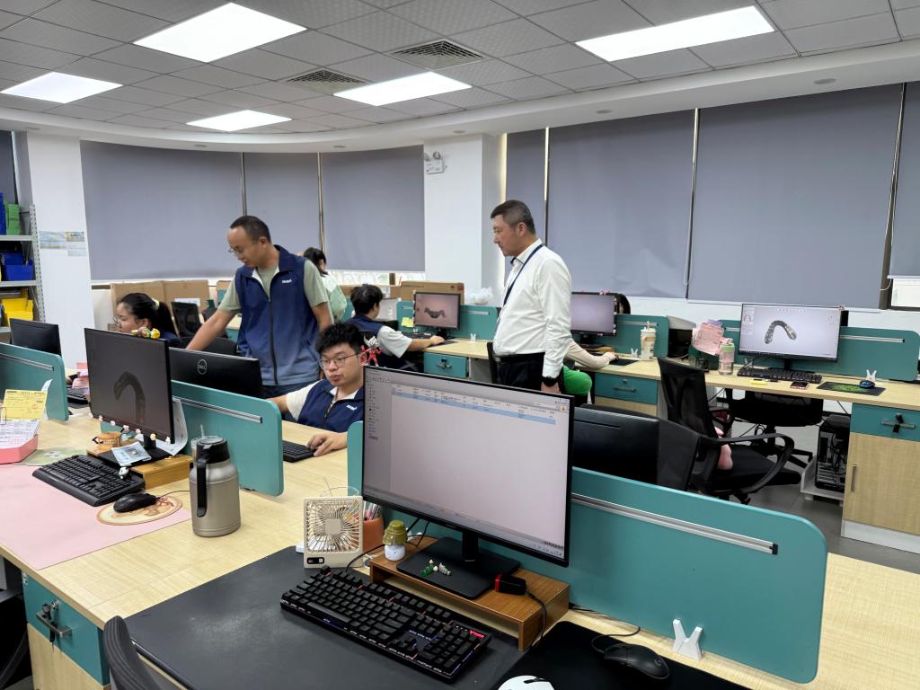 校企雙方圍繞合作模式、人才培養(yǎng)、實習(xí)就業(yè)、技術(shù)服務(wù)等議題展開深度交流。在兩家企業(yè),王春海院長一行先后參觀了義齒設(shè)計中心、數(shù)字化生產(chǎn)車間、質(zhì)量檢測實驗室等核心區(qū)域,近距離觀摩了數(shù)字化掃描、3D打印等現(xiàn)代化義齒制作流程。