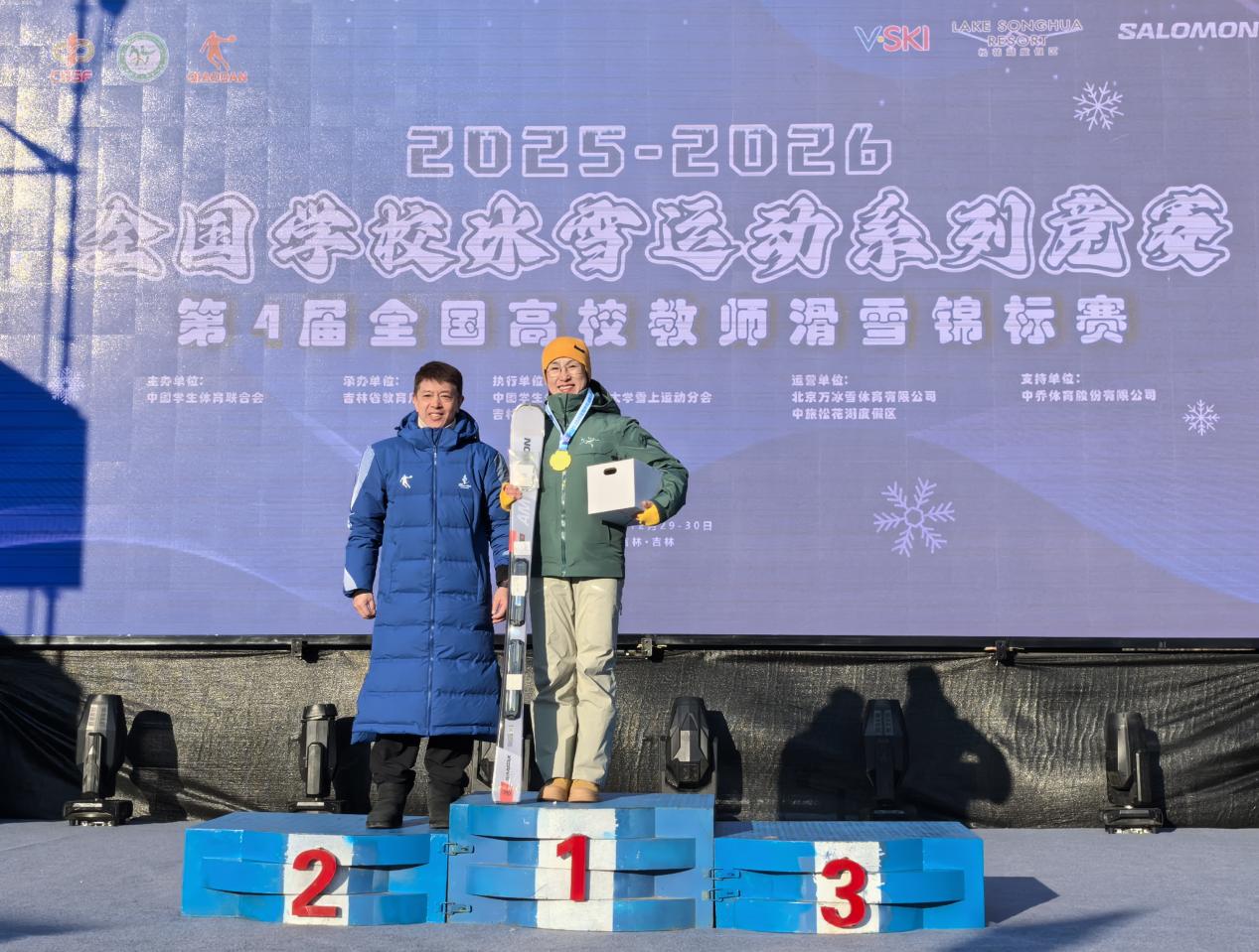 在這場(chǎng)高手如云、競(jìng)爭(zhēng)激烈的賽事中,我校體育教學(xué)部孫艷平老師憑借著精湛的滑雪技藝、頑強(qiáng)的拼搏意志和沉穩(wěn)的競(jìng)技心態(tài),在高山大回轉(zhuǎn)女子教授乙組比賽中脫穎而出,一舉奪得冠軍。值得一提的是,這已是孫艷平老師第三次在該賽事中斬獲冠軍,再一次為我校贏得了榮譽(yù)。