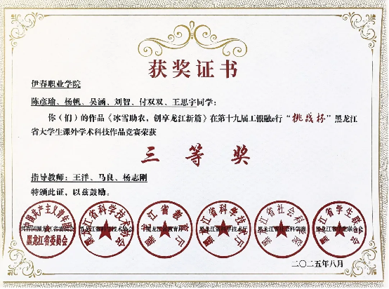 科技創(chuàng)新成績再創(chuàng)新高:《冰雪助農(nóng),創(chuàng)享龍江新篇》榮獲第十九屆工銀融e行“挑戰(zhàn)杯”黑龍江省大學(xué)生課外學(xué)術(shù)科技作品競賽三等獎。