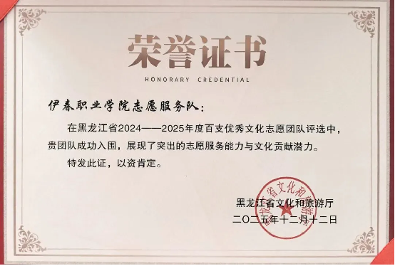 志愿服務(wù)新突破:“綠遍伊春·美在伊職”生態(tài)環(huán)保推廣計劃志愿服務(wù)項目榮獲第八屆黑龍江省青年志愿服務(wù)項目銅獎;伊春職業(yè)學(xué)院志愿服務(wù)隊被評為黑龍江省文化和旅游廳2024—2025年度百支優(yōu)秀文化志愿團隊。