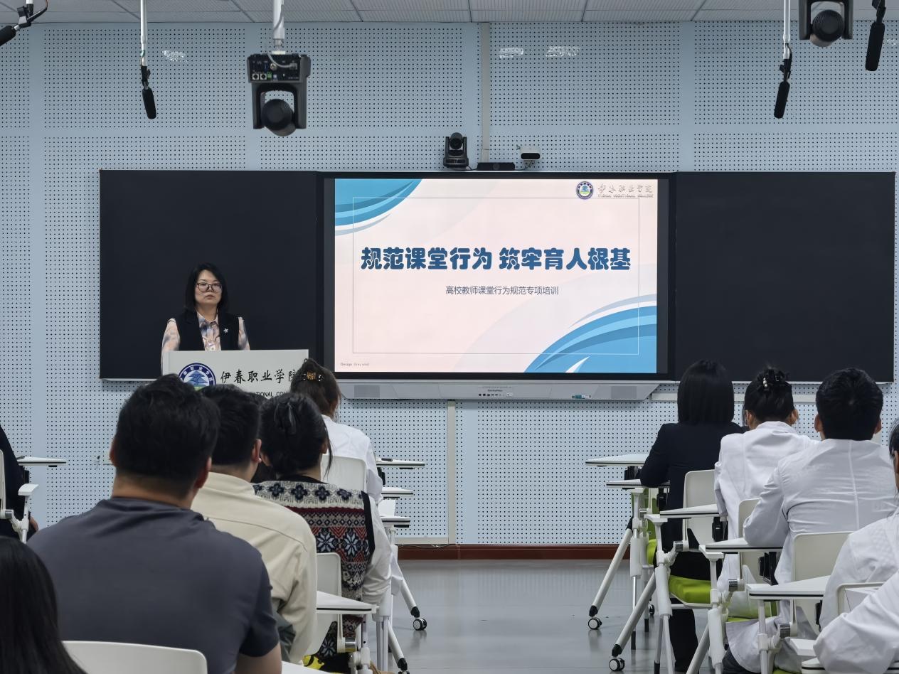 本次培訓緊密圍繞課前準備、課堂實施、課后延伸三個關(guān)鍵維度,系統(tǒng)解讀高校教師課堂行為的核心要求與實踐路徑。教務處處長朱丹丹在培訓中從言行舉止、教學實施、價值引領(lǐng)等方面明確規(guī)范要求,強調(diào)課堂是知識傳授、能力培養(yǎng)、價值引領(lǐng)的核心場景,教師的課堂行為直接關(guān)系教學質(zhì)量與學生成長,是教育家精神落地見效的重要體現(xiàn)。要求教師以“言為士則、行為世范”為準則,使用嚴謹語言,保持得體職業(yè)形象。并通過持續(xù)復盤教學、優(yōu)化方案,實現(xiàn)教師專業(yè)能力迭代升級。