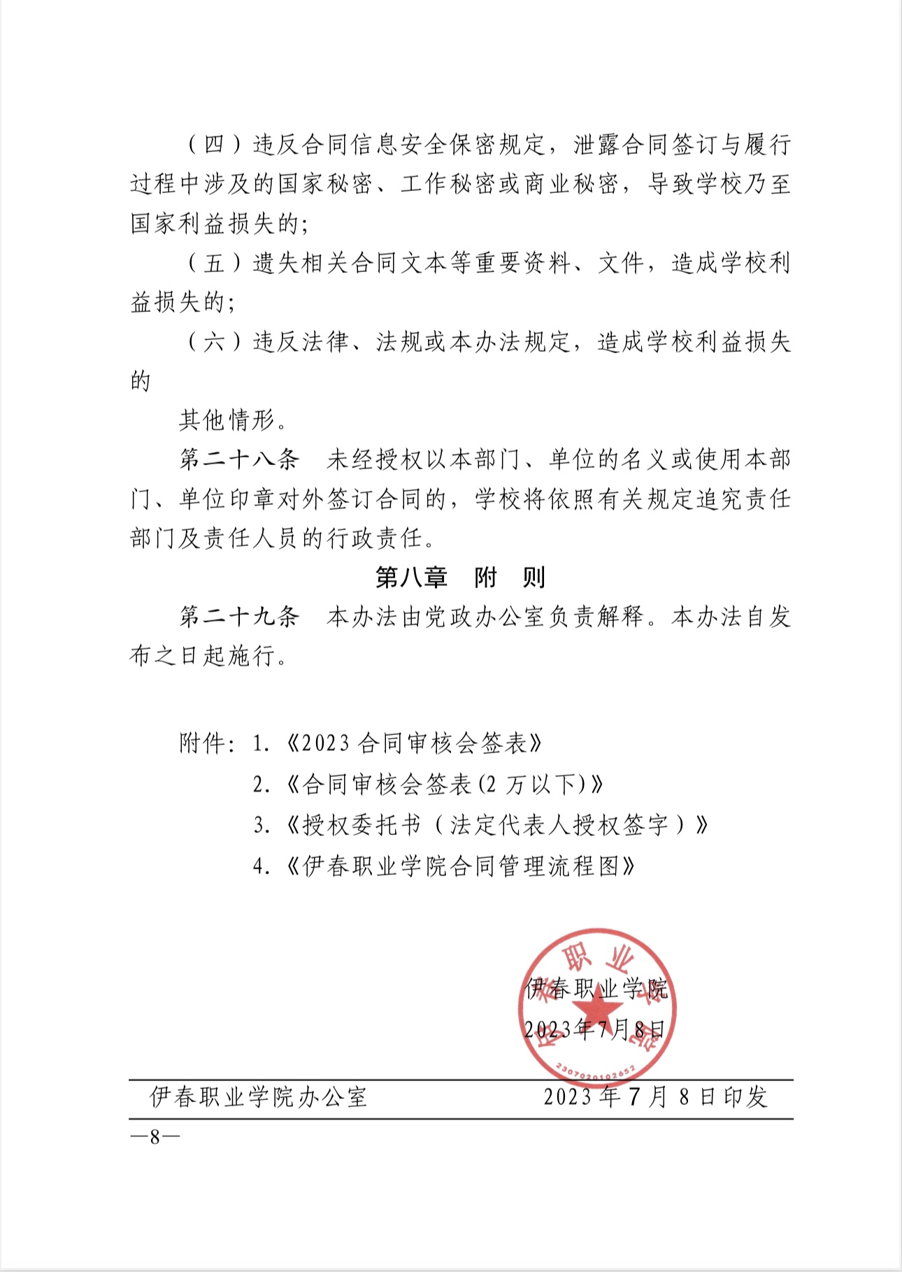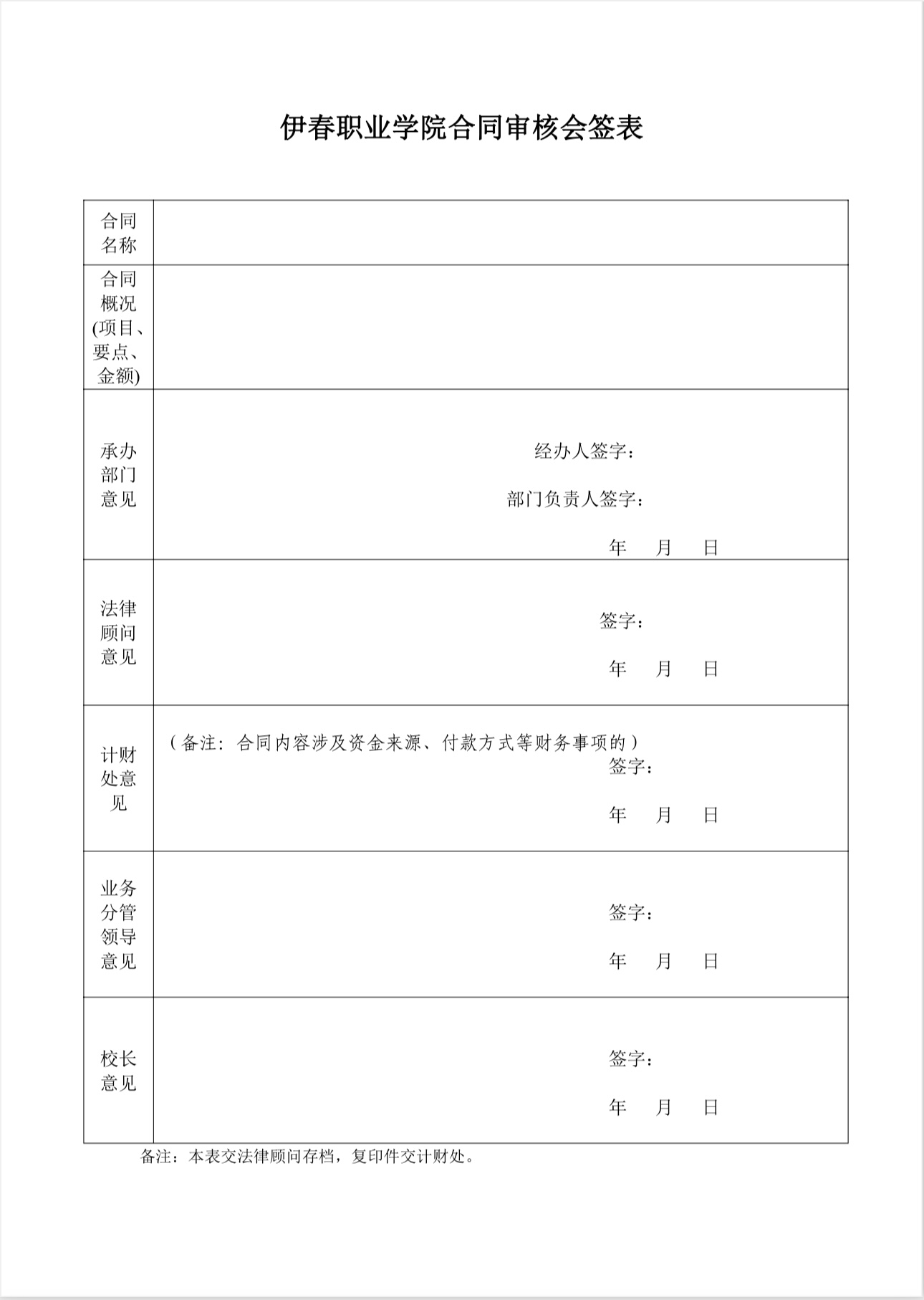伊春職業(yè)學院合同管理辦法(試行)