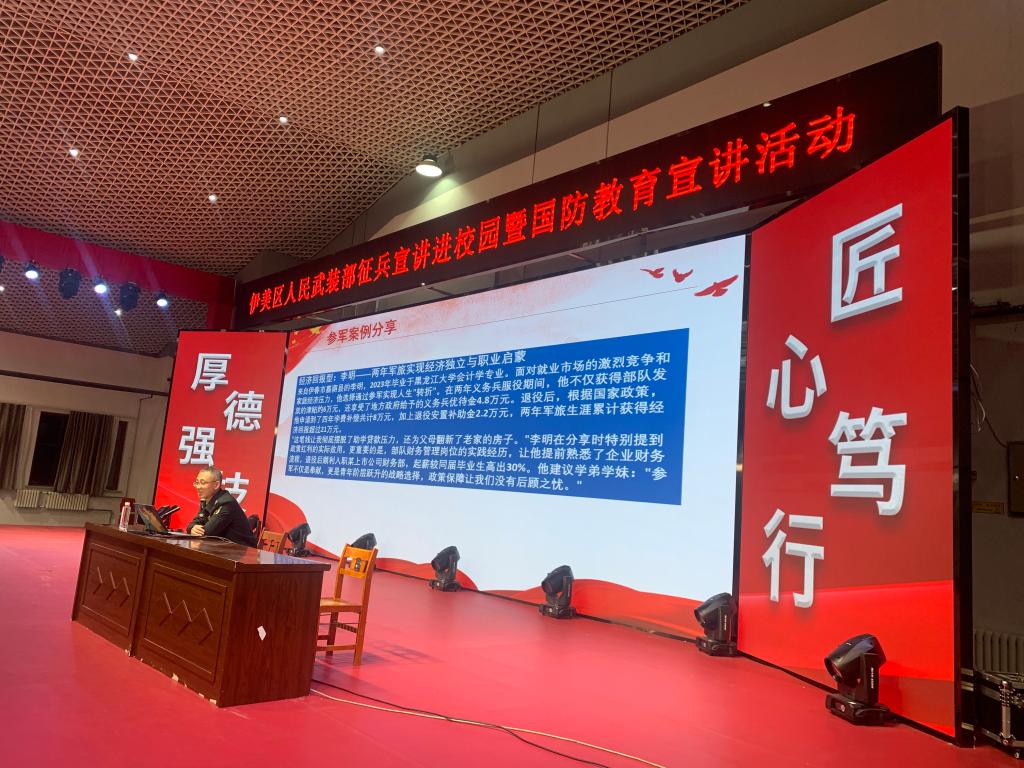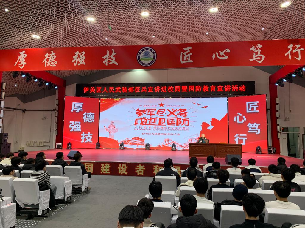 為深入貫徹習(xí)近平強軍思想,全面普及國家征兵政策,激發(fā)青年學(xué)子參軍報國、奉獻國防的熱情,推動征兵宣傳工作走深走實,強化大學(xué)生國防安全意識,壓實責(zé)任擔(dān)當(dāng),近日,我校聯(lián)合伊美區(qū)人民武裝部開展了2026年征兵宣傳進校園暨國防教育宣講活動。各學(xué)院有入伍意愿的500余名學(xué)生參與活動。