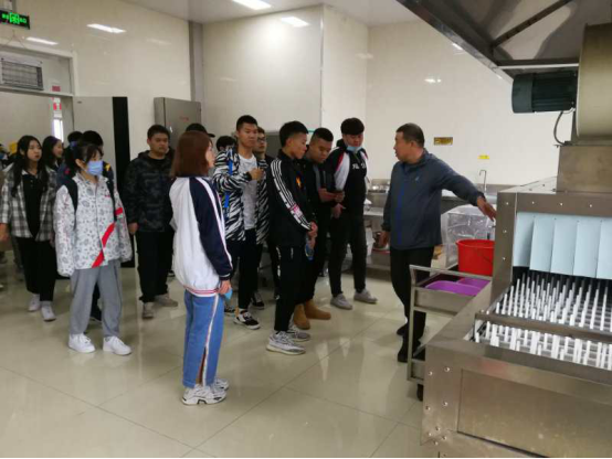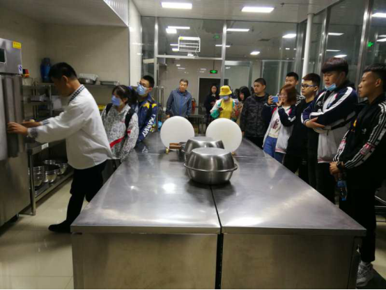 會后學(xué)生對食堂廚房餐具的洗消、主副食品的制作流程進行全程參觀,并了解了采購、食品留樣等相關(guān)內(nèi)容。