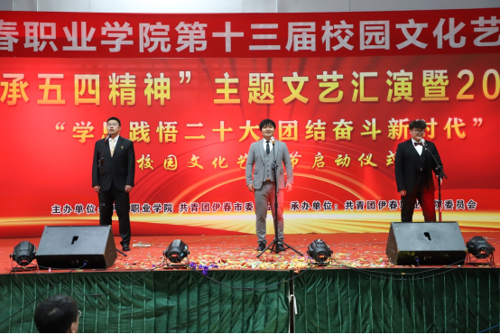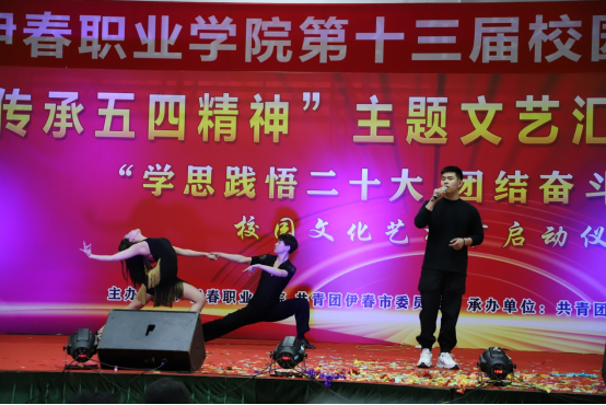為深入學(xué)習(xí)貫徹黨的二十大精神,傳承弘揚(yáng)五四精神,引導(dǎo)和激勵(lì)全校廣大青年挺膺擔(dān)當(dāng)、砥礪奮斗,在實(shí)踐中綻放青春光芒、書寫精彩華章,5月4日,我校舉行“傳承五四精神”主題文藝匯演暨2023年“學(xué)思踐悟二十大 團(tuán)結(jié)奮斗新時(shí)代”校園文化藝術(shù)節(jié)啟動(dòng)儀式。伊春職業(yè)學(xué)院院長王春海,團(tuán)市委書記王浩、副書記米豐鳴、張曉萌,學(xué)院黨委委員、宣傳統(tǒng)戰(zhàn)部長節(jié)楊出席此次活動(dòng),學(xué)工部、校團(tuán)委及二級(jí)學(xué)院院長、副書記、輔導(dǎo)員及學(xué)生代表共600余人參加此次活動(dòng)。