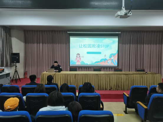 隨后,西城派出所范警官以通俗易懂的語言,結合生動的案例,深入淺出地向同學們講解了校園欺凌的概念及其具體表現(xiàn)形式,并就如何預防欺凌、應對欺凌等問題給出了具體建議。