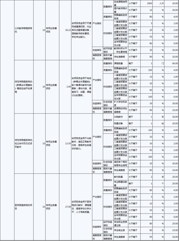 9、績效目標(biāo):是預(yù)算績效管理對象計(jì)劃在一定期限內(nèi)達(dá)到的產(chǎn)出和效果,包括產(chǎn)出指標(biāo)、效益指標(biāo)和服務(wù)對象滿意度指標(biāo),是績效運(yùn)行監(jiān)控、績效自評價(jià)、部門評價(jià)、財(cái)政評價(jià)等預(yù)算績效管理工作的前提和基礎(chǔ)。