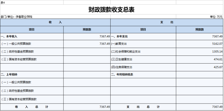 四、財(cái)政撥款收支總表