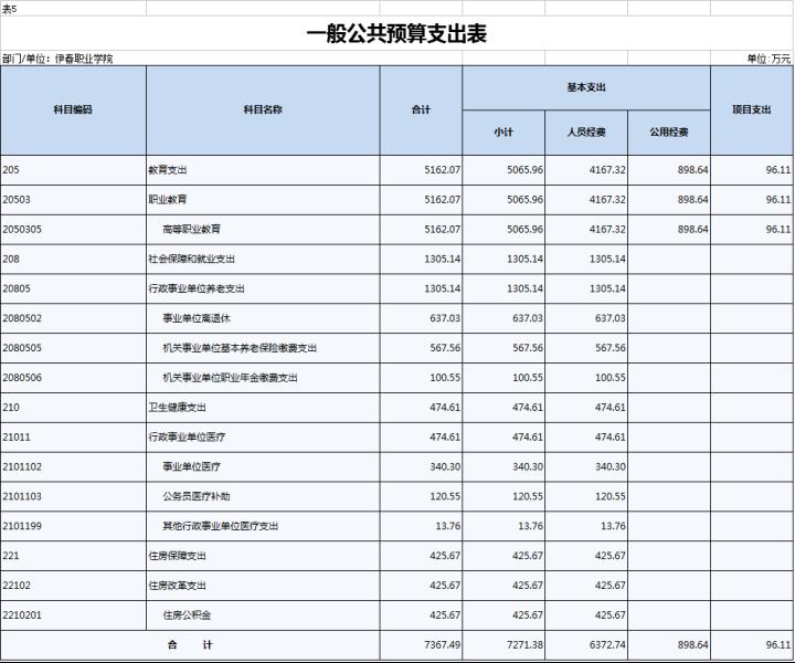 2022年,伊春職業(yè)學(xué)院一般公共預(yù)算支出7367.49萬元,其中:基本支出7271.38萬元,項(xiàng)目支出96.11萬元。