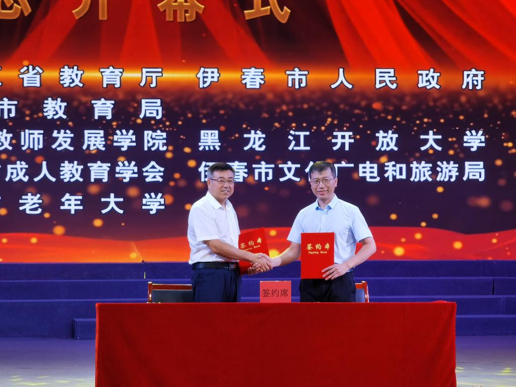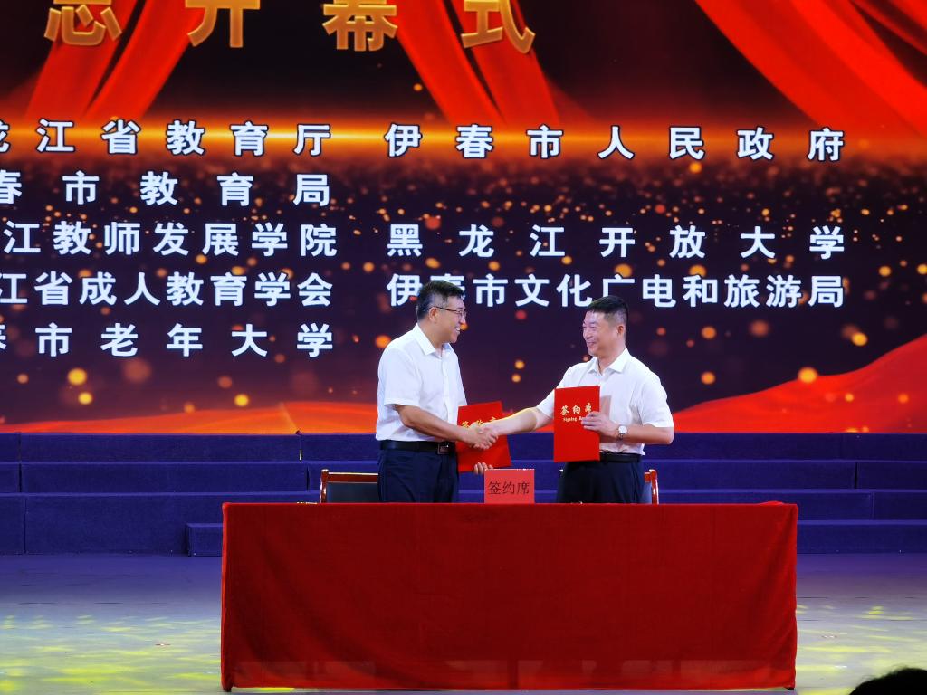 7月30日上午,以“大力發(fā)展老年教育 構建終身教育體系”為主題的2022年黑龍江省“全民終身學習活動周”總開幕式在伊春林業(yè)藝術劇院舉行。在開幕式上,我校黨委書記麻昌杰與黑龍江伊春森工集團有限責任公司、建龍西林鋼鐵有限公司、黑龍江拓盟科技有限公司簽訂校企合作協(xié)議。
