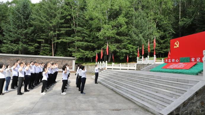 參觀結(jié)束后,麻昌杰一行來到紅色基地——抗聯(lián)遺址老錢柜,瞻仰了老錢柜紀念碑和浮雕,聆聽了“奇襲老錢柜”的抗聯(lián)故事。在紀念碑前,麻昌杰帶領全體黨員面向黨旗,高舉右手,重溫入黨誓詞。