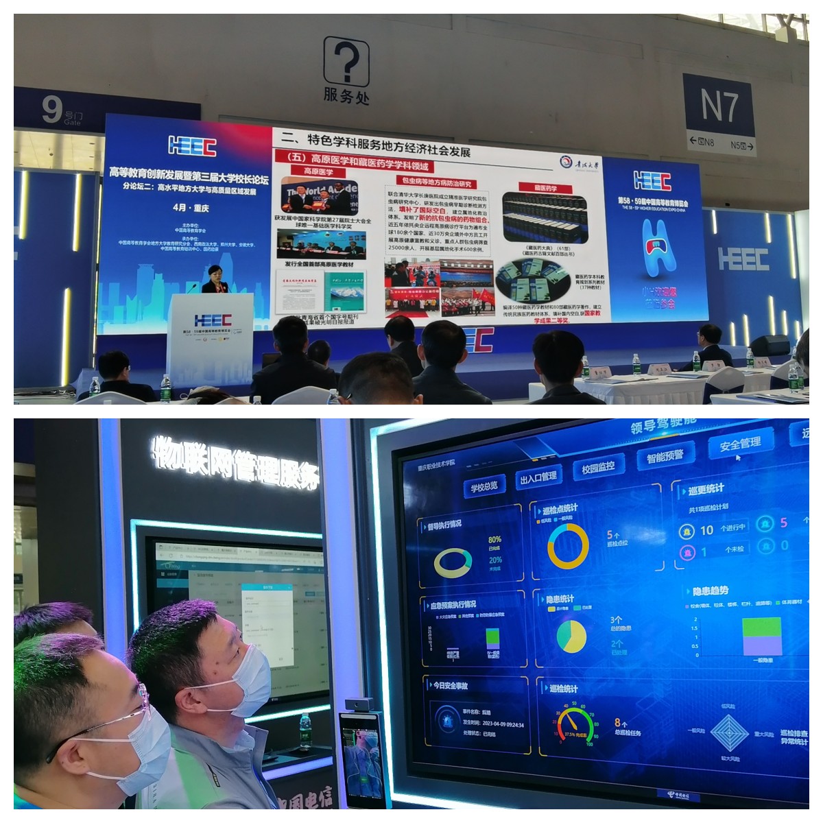 近日,第58·59屆中國高等教育博覽會在重慶國際博覽中心開幕。近20位兩院院士、千余名專家學者,各省級教育部門人員和500多位高校人員齊聚山城,共謀高等教育高質量發(fā)展。我院由王春海院長帶隊,組織相關部門參會。計算機應用技術學院院長王洪錦、護理學院院長韓金華、旅游商務學院院長趙莉莉、教務處副處長(創(chuàng)新創(chuàng)業(yè)學院院長)郭玉蓮、教務處副處長李薇、師范學院環(huán)境藝術設計教研室主任張健一行七人參加高博會。